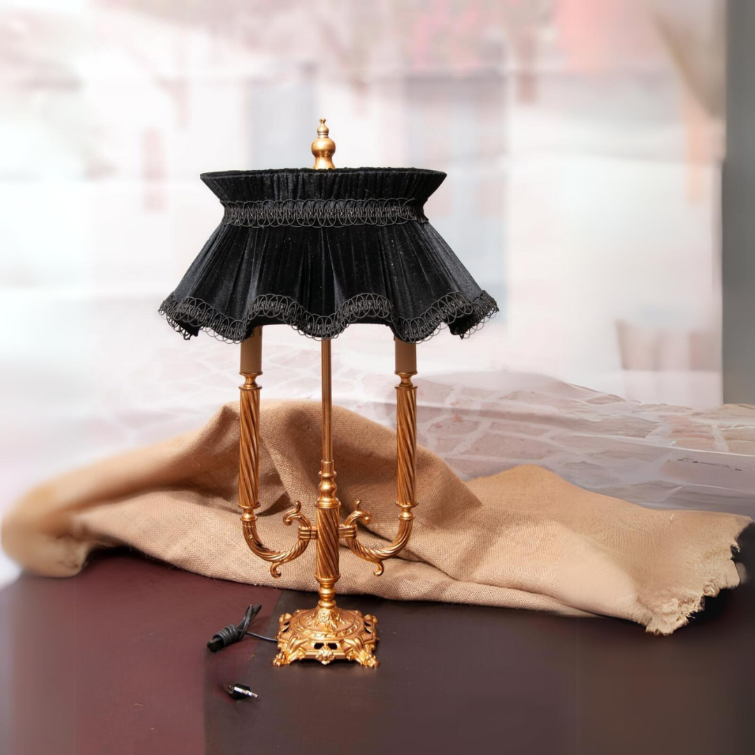 Abajurda kullanılan kumaş ise yüksek kaliteli kadifeden yapılmıştır. Kadife, yüksek kaliteli bir malzemedir ve ışığı şık bir şekilde yansıtır. Ayrıca, kumaşın yumuşak dokusu ve zarif tasarımı, odanıza rahat ve sıcak bir atmosfer katılmasını sağlar.